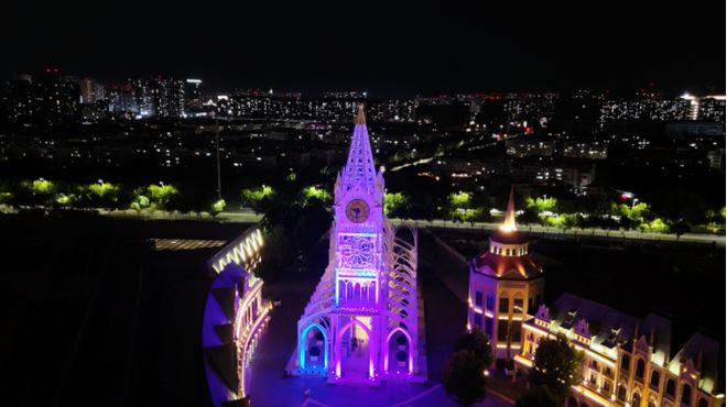 夜幕降临,浪漫如期而至。自现在一直持续到11月20日,每晚19:00和20:00,标志性哥特式婚礼堂上演夜揽星河灯光秀。激光如星河倾泻,唯美旋律在夜空回荡,打造出童话照进现实的梦幻场景。